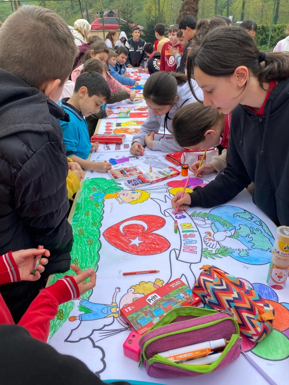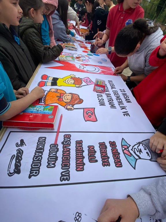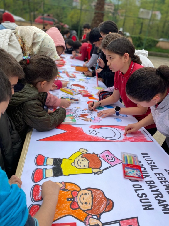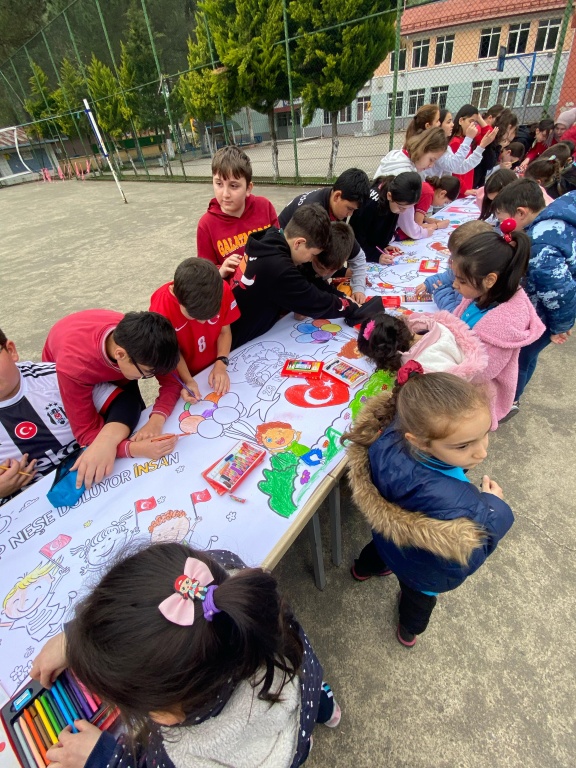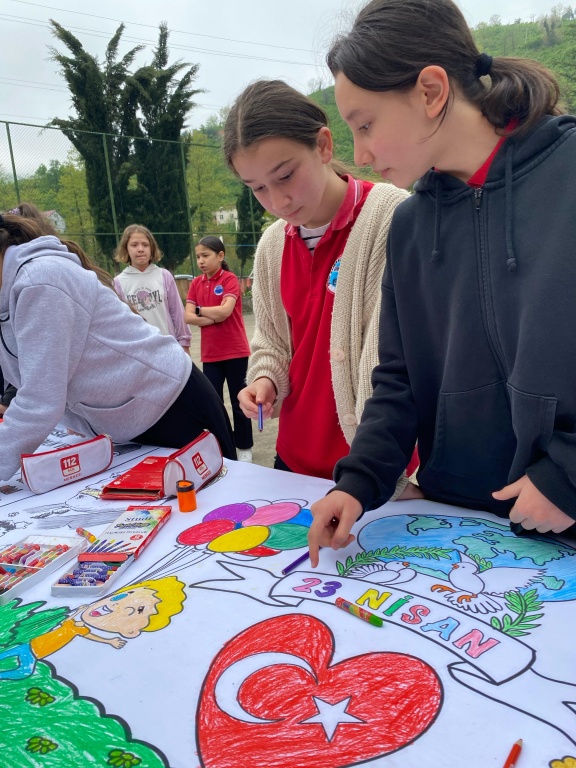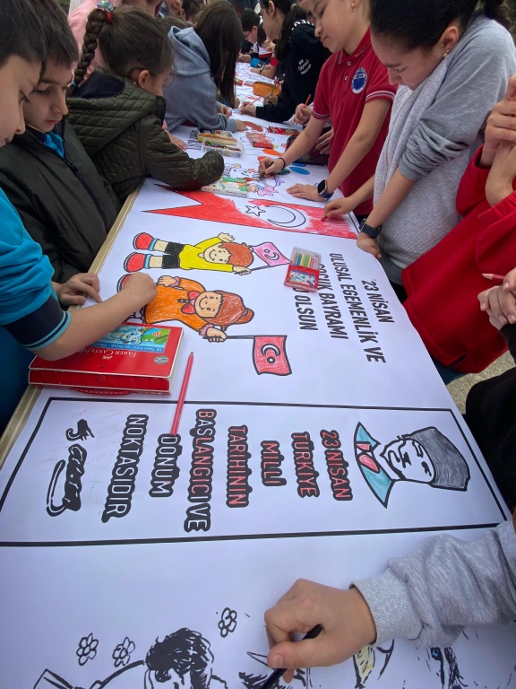 Okulumuzdaki küçük hanımlar ve küçük beyler bir araya gelerek 23 Nisan Toplu Boyama Etkinliğini icra ettiler.